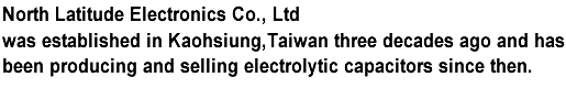 | As one of the aluminum electrolytic capacitor suppliers in Taiwan, North Latitude Electronics Co., Ltd is focusing its business on producing and selling the JUN FU brand aluminum electrolytic capacitor as well as distributing capacitors, in conformity with X safety standards, produced by well-known local suppliers CTX and UTX. |